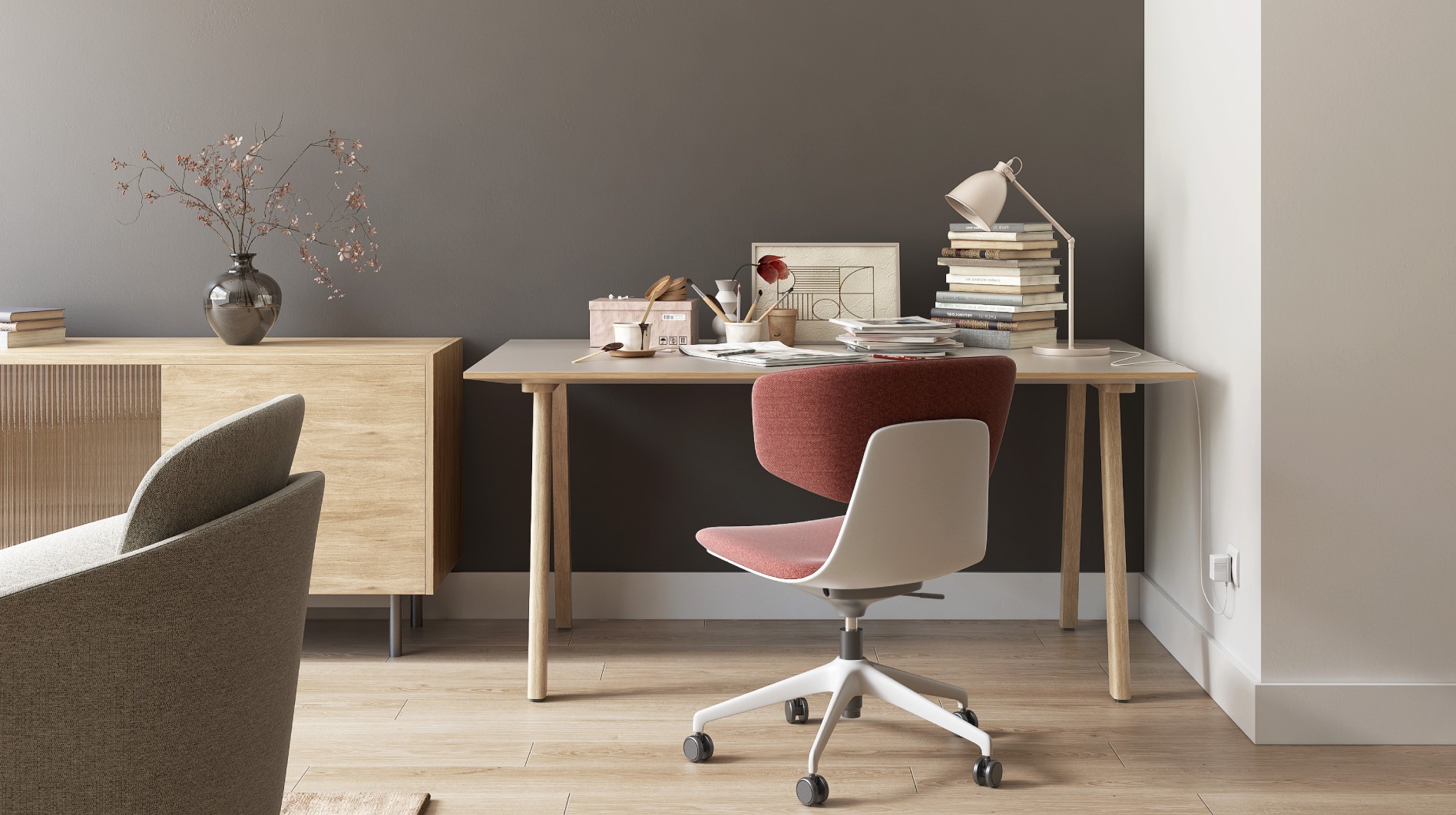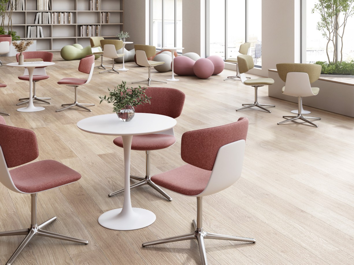 Sleek lines outline an exquisite silhouette.The clever combination of soft upholstery and plastic achieves both visual lightness and practical durability.