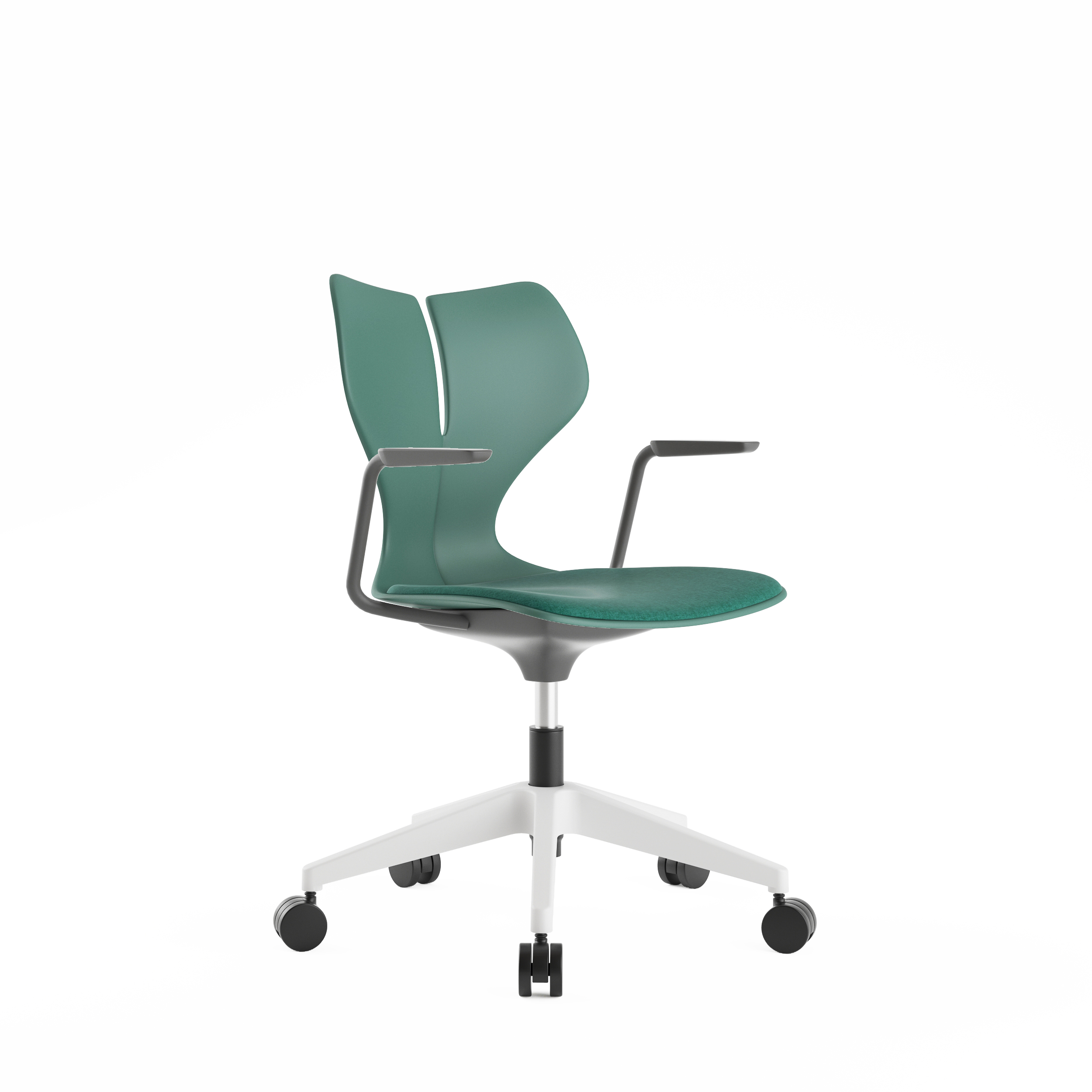 The backrest and seat cushion feature an ergonomic curved design for balanced support.