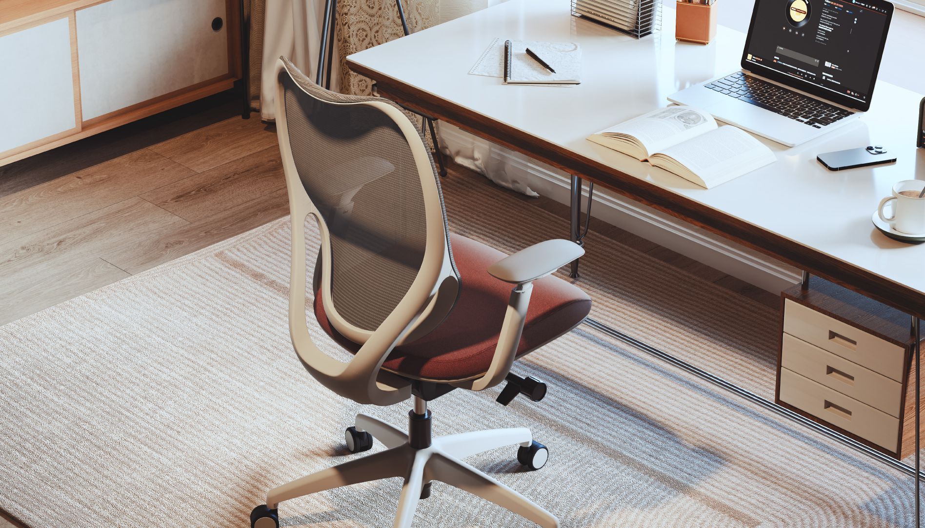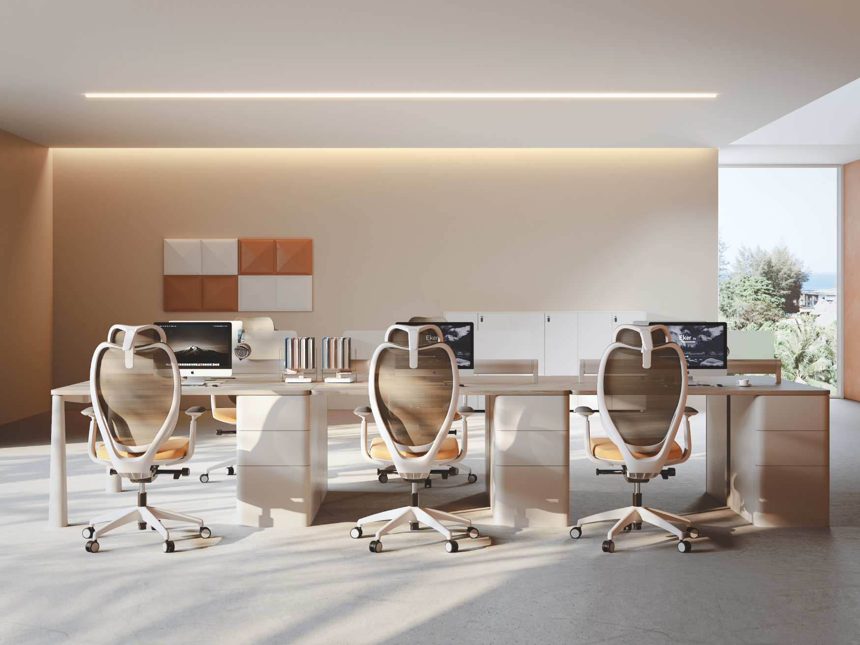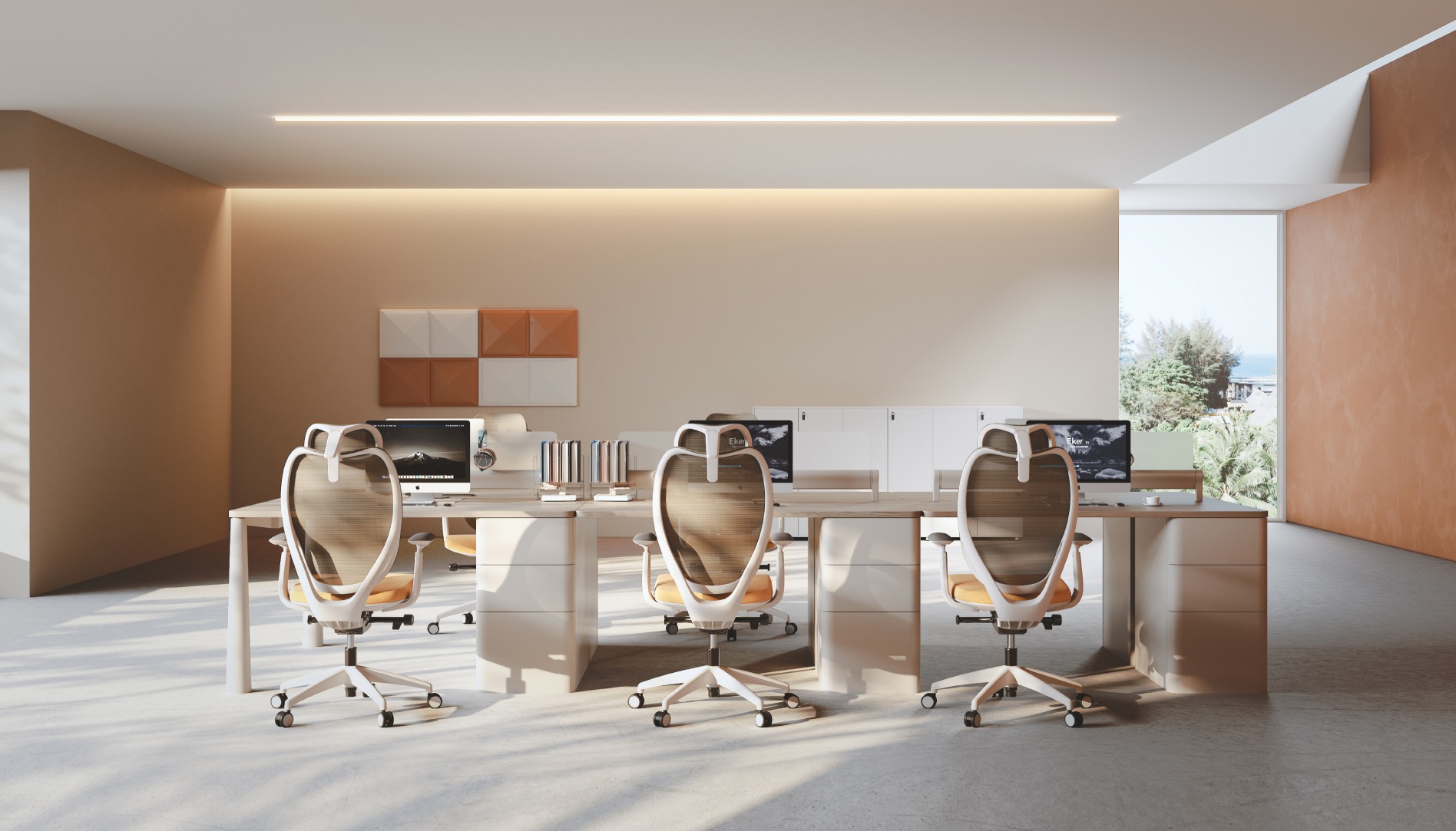 The sculptural aesthetic of blooming brushstrokes allows style to burst forth along dynamic lines, crafting an office atmosphere filled with sophistication and vibrant energy.