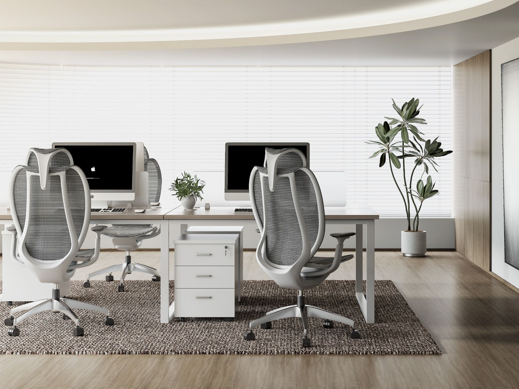 In practice, it blends effortlessly into any office layout, making it ideal for modern spaces that prioritize spatial efficiency and minimalist aesthetics.