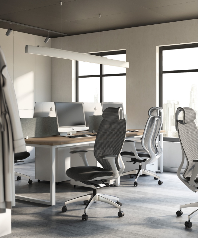 Interpreting ergonomics with graceful streamline curves, the backrest and seat cushion are precisely contoured to fit the curves of your waist and hips.